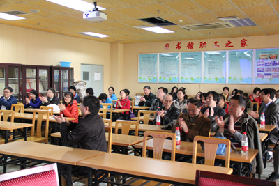 白守礼馆长结合2015年重点工作作总结发言,他希望全馆教职工一如既往地做好图书馆服务工作,增强馆风建设,同时,大家应加强自身业务学习,努力提高科研成果,实现共赢。